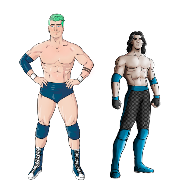 Draconium makes their way down the ramp with emotionless faces, and they all walk up the steps and into the ring. The Golden Pros carefully back up to one side of the ring while Queen Solis and her minions take position on the other side.